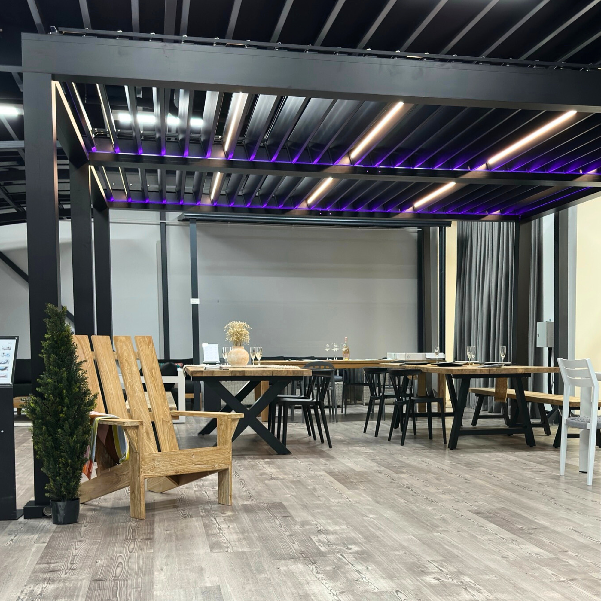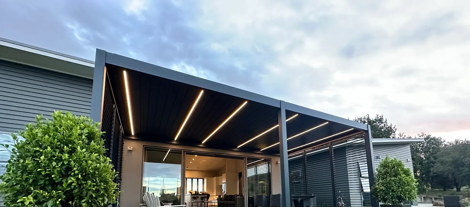 Motorised louvres, LED lighting, Rain Sensors and Side Screens designed for all-day, all-season use.