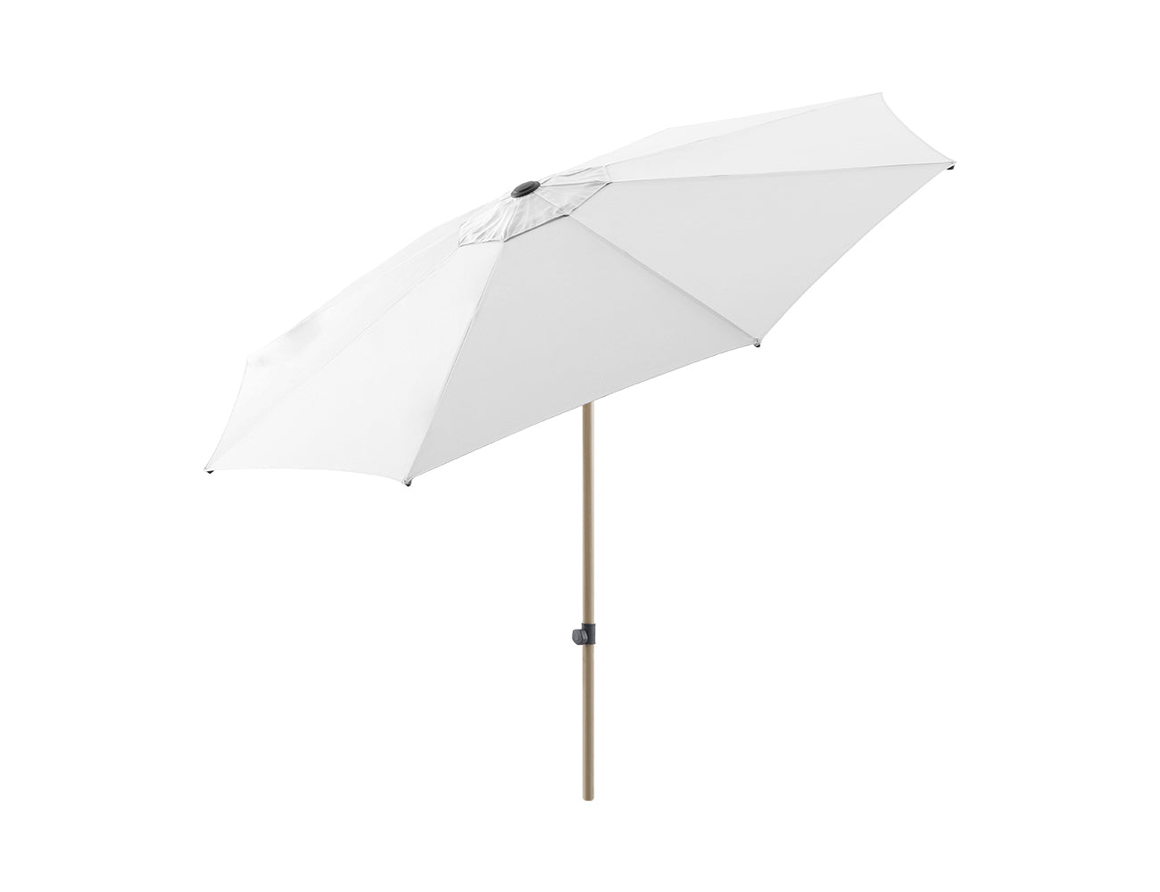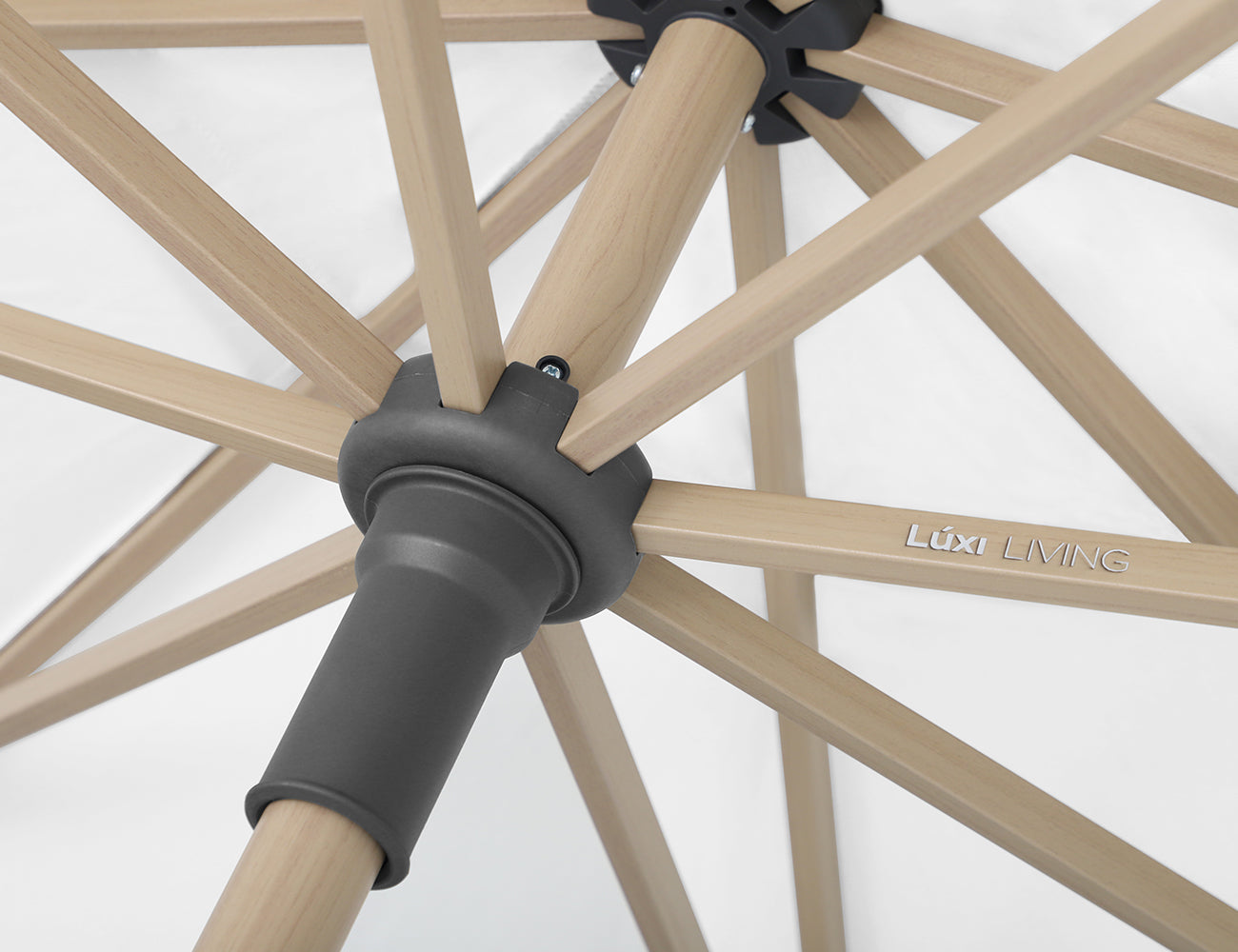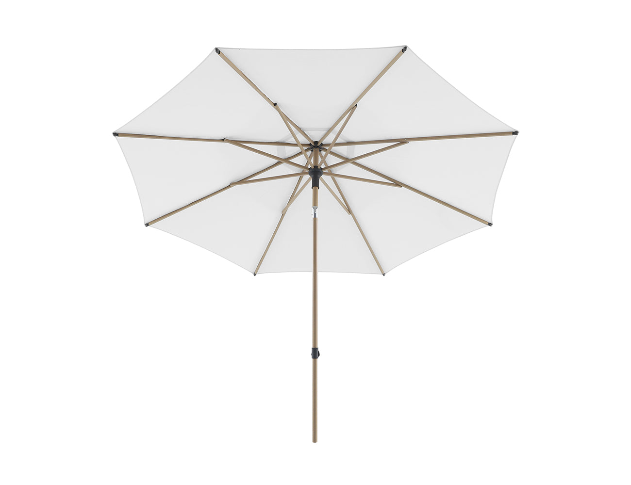 The Kryon 2.7m Round Market Umbrella brings natural charm. Its aluminum frame has the look of real wood, but won’t crack, warp, or fade with time.