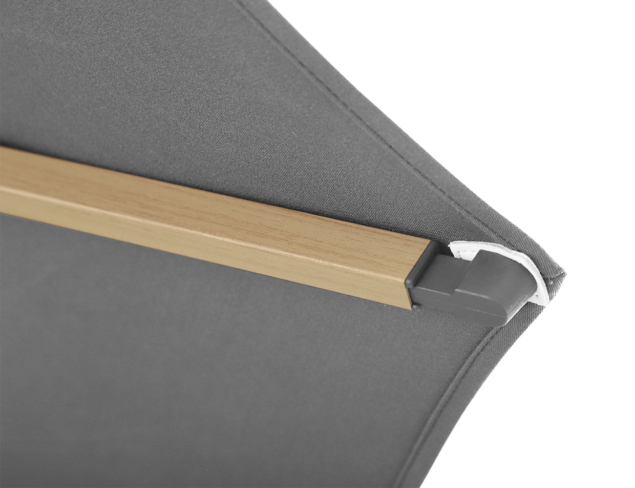 - Frame: Aluminium with wood texture finish /2-piece-pole with adjustable height