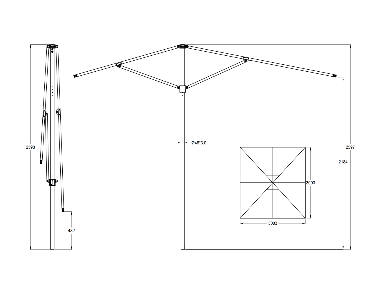 This 3 m square market umbrella gives you a large, cool shade even when the weather is not so calm. The thick aluminium frame is strong yet light enough to move when you need to. The canopy fabric keeps its colour season after season, so it looks fresh on your deck, patio, or café terrace.