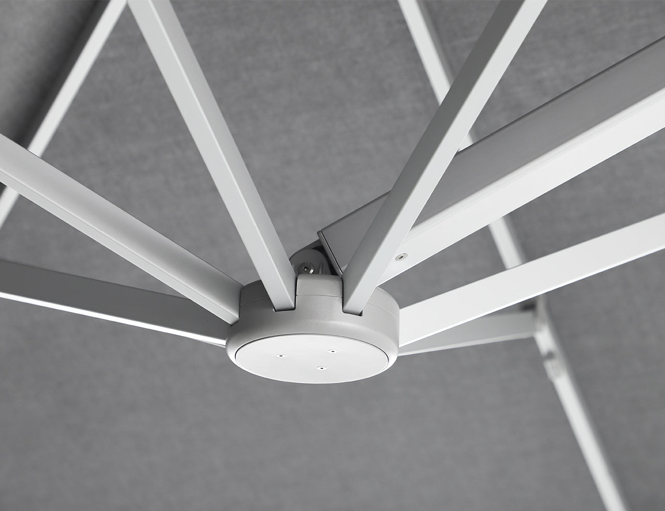 Tecra combines two 3× 3m canopies into one generous 18 m² shade—perfect for large tables, lounges, or outdoor dining areas. Thanks to the gas-assisted lift system, it opens and closes effortlessly—no cables to tangle or replace. Each canopy can be operated independently, with adjustable height tilt for flexible shade. And with a single central pole, there’s no clutter underneath—making it ideal for outdoor spaces where every inch matters.
