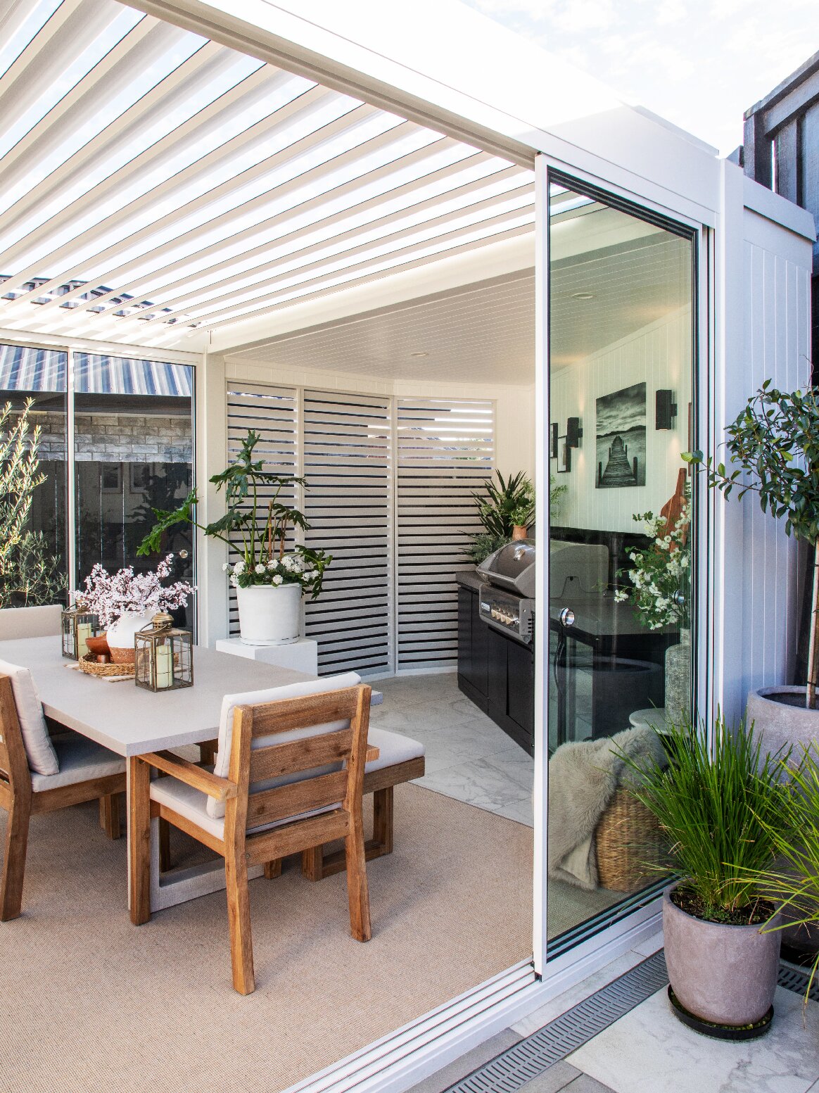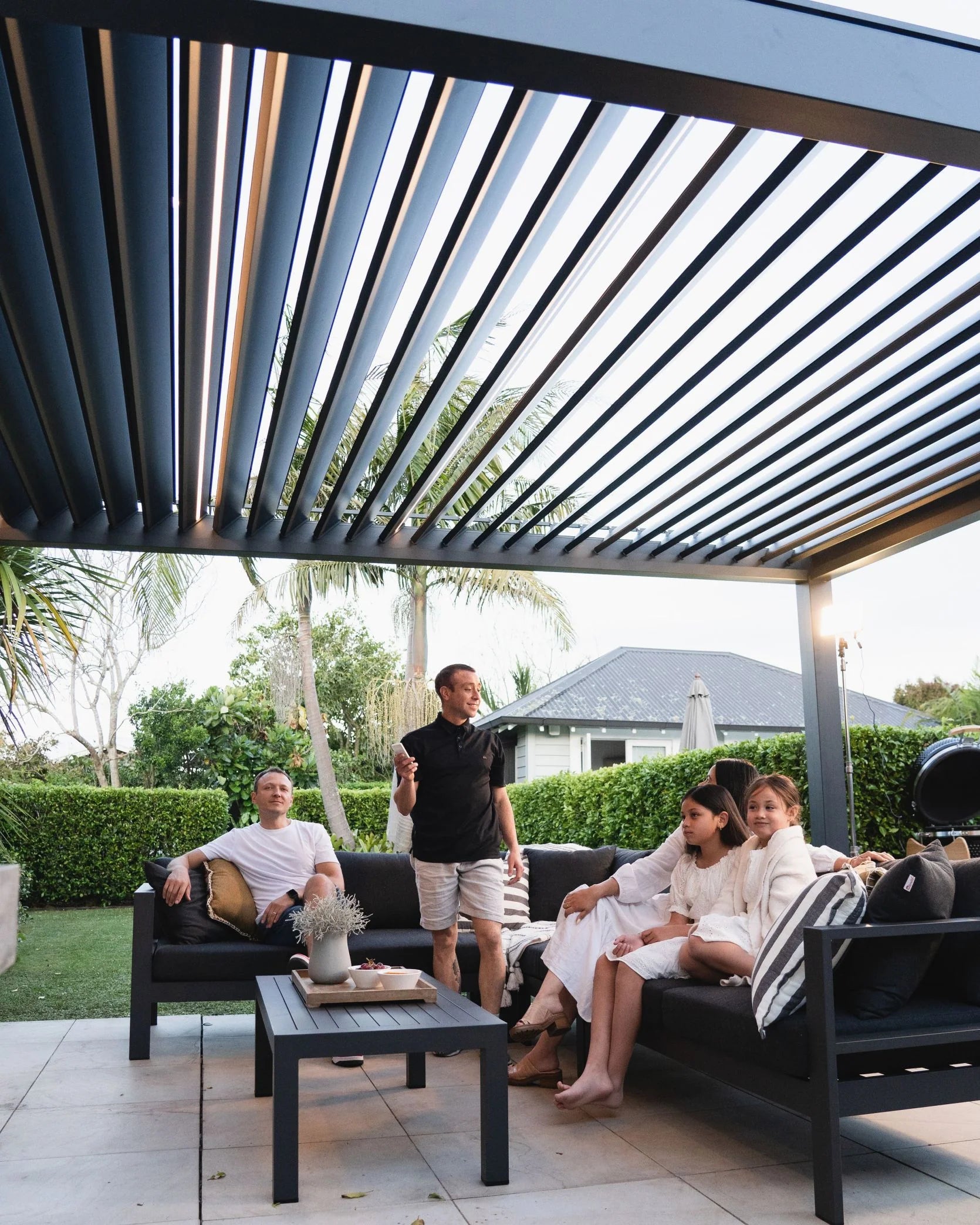 Motorised louvres, LED lighting, Rain Sensors and Side Screens designed for all-day, all-season use.