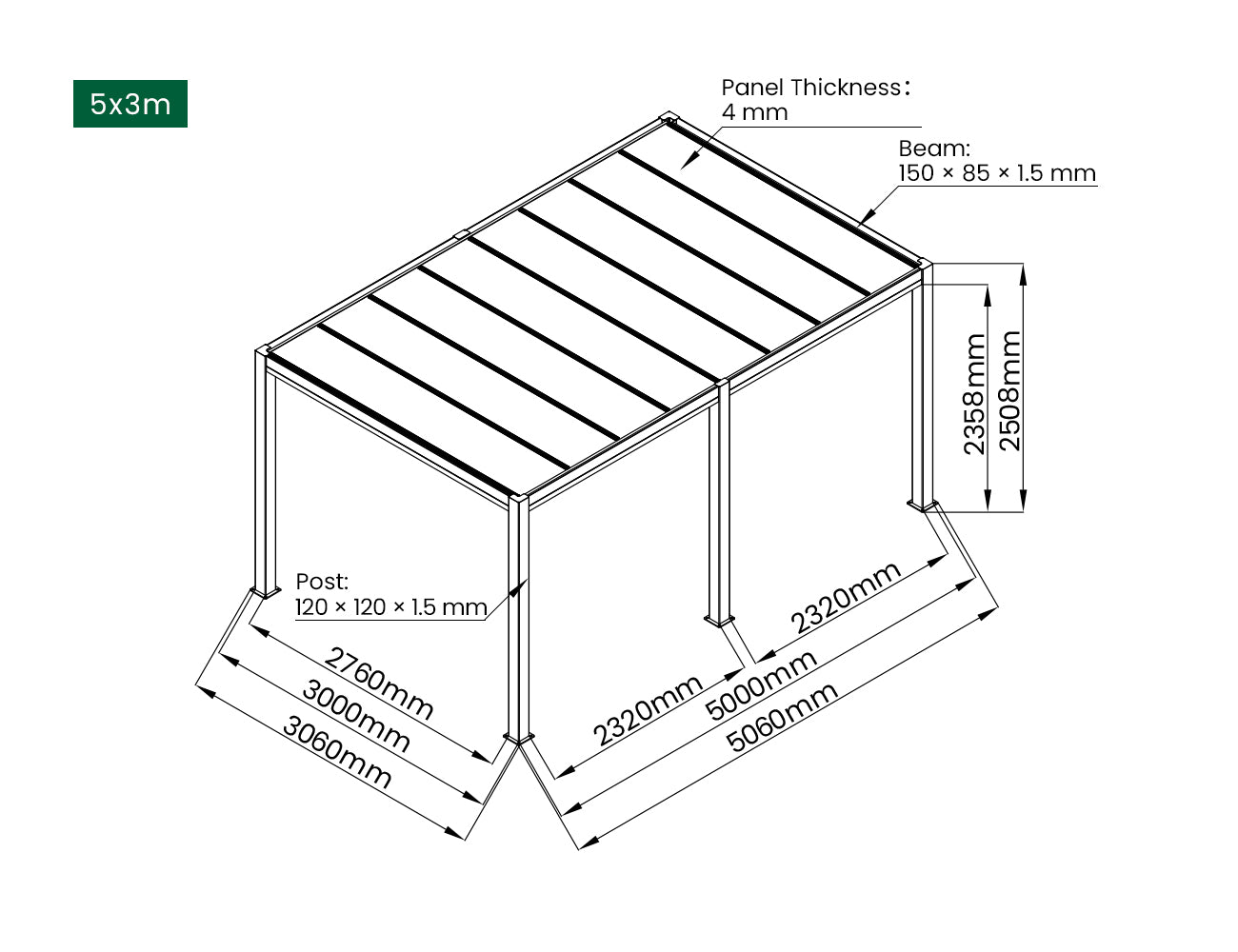 • Solid Polycarbonate Roof – German-designed Bayer® 4 mm panels provide reliable shelter while maintaining 85% light transmission for a bright, open atmosphere.