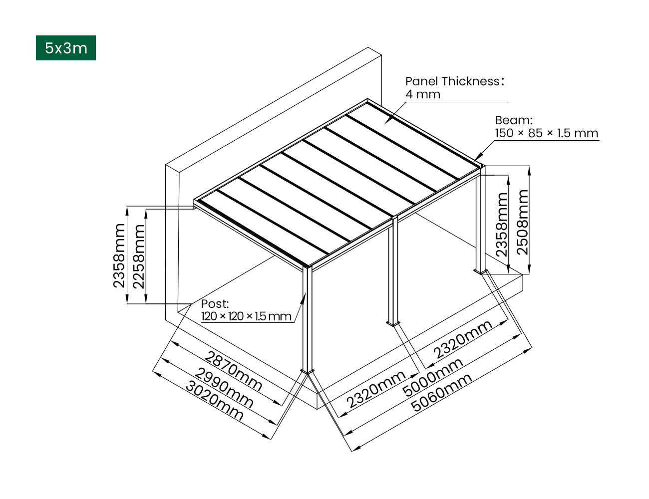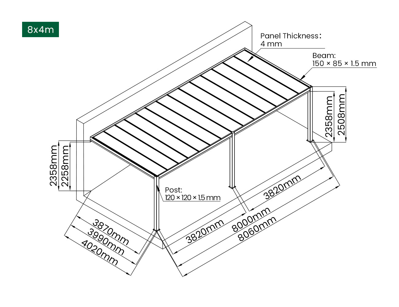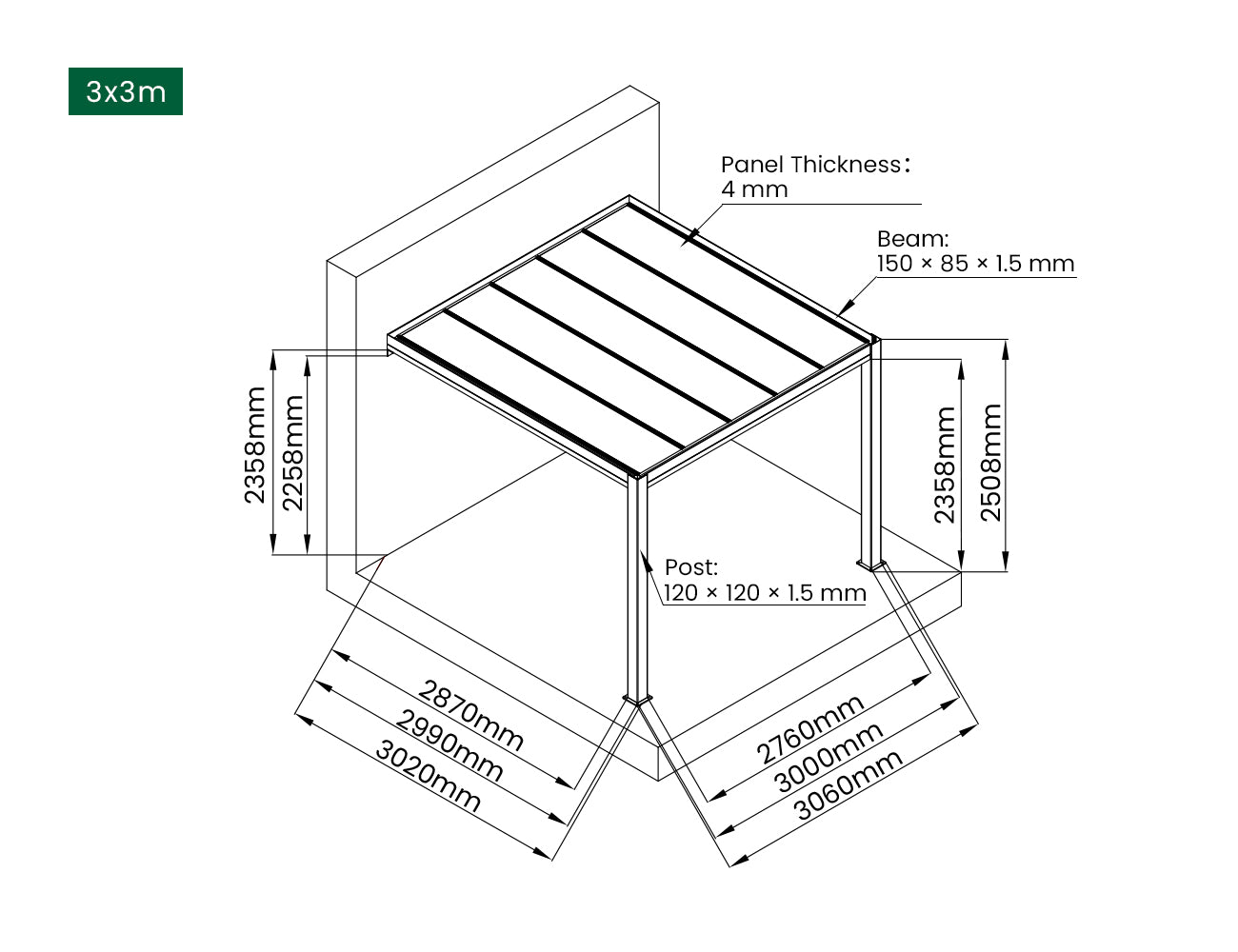 Wall Mounted 3 x 3m 4 x 3m 5 x 3m 6 x 3m 8 x 3m