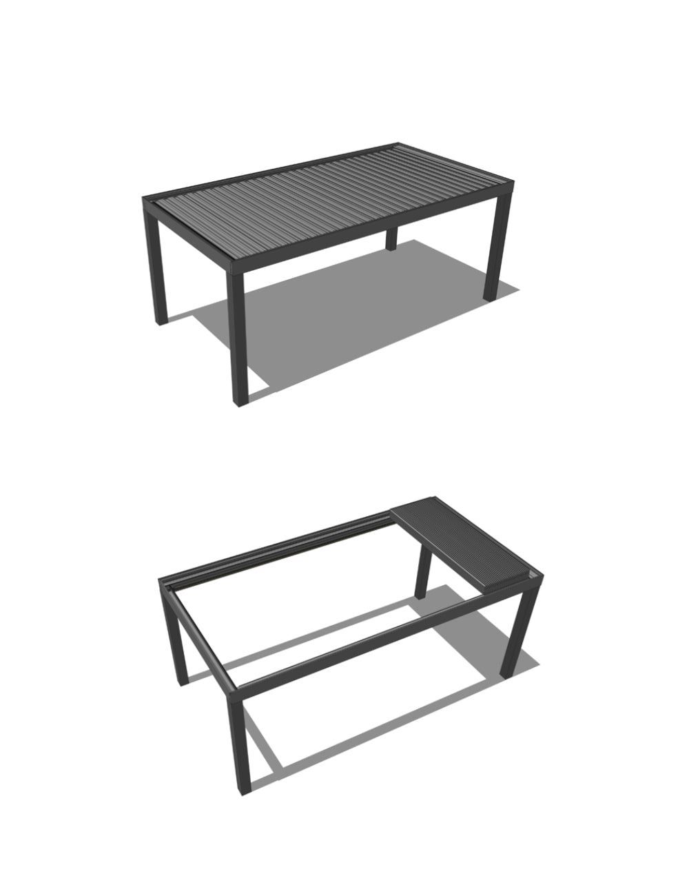 - Material: The pergola blades are 6063-T6 aluminium, and the rest of the parts are 6063-T5 aluminium