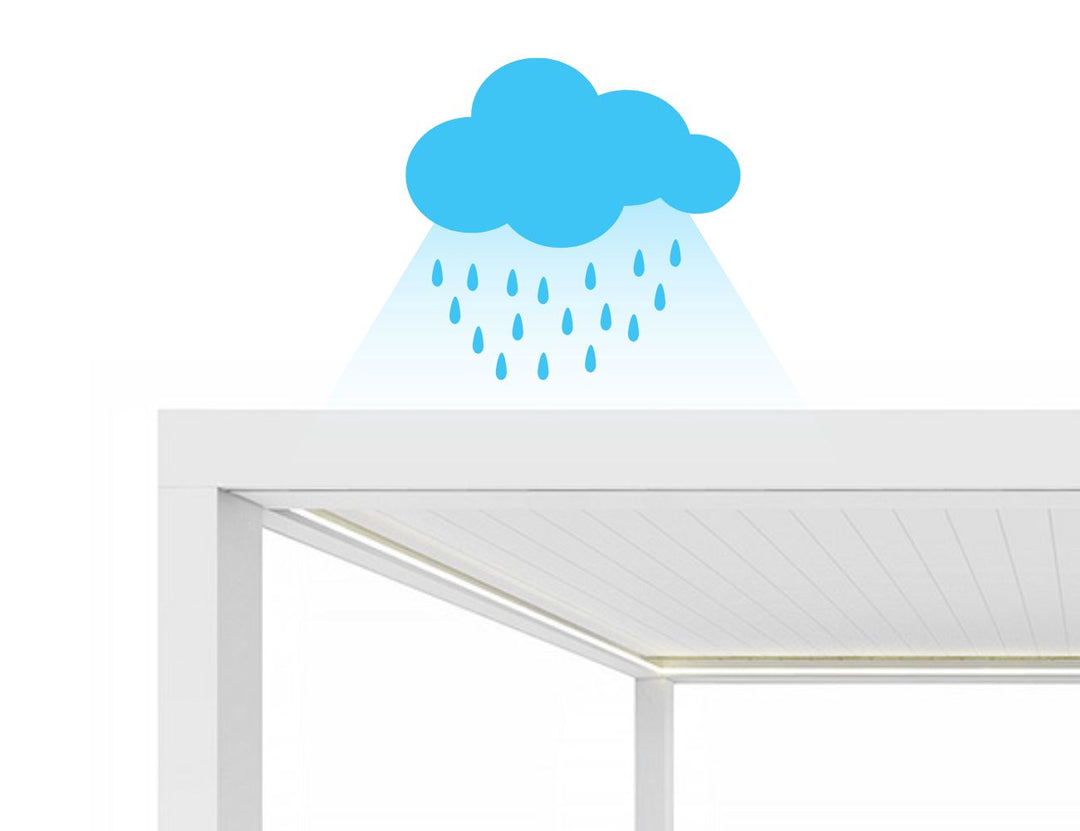 When the weather turns wet you can close the blades for the perfect waterproof roof.