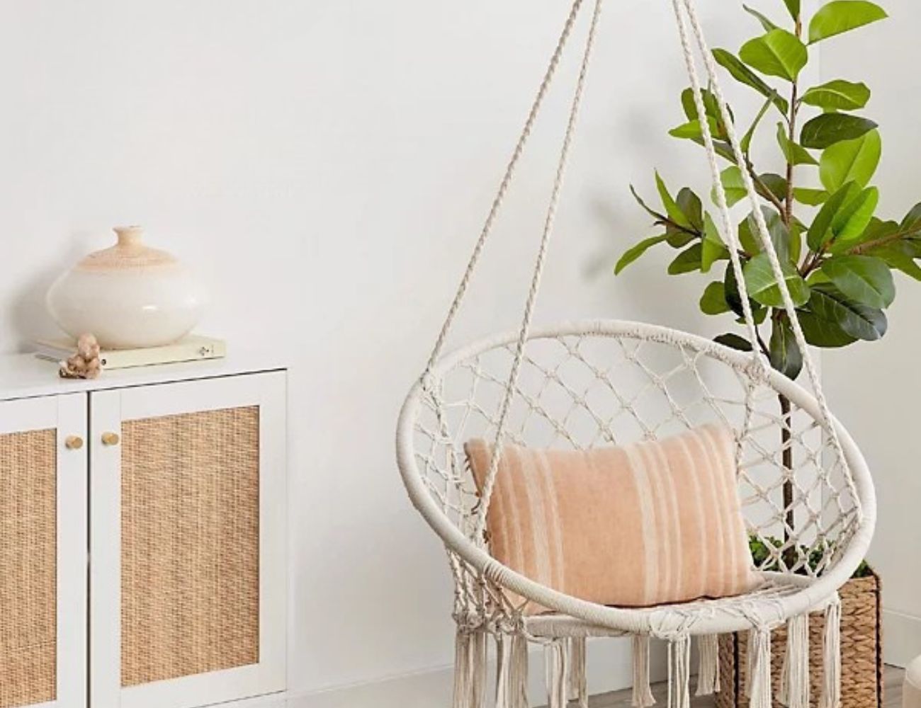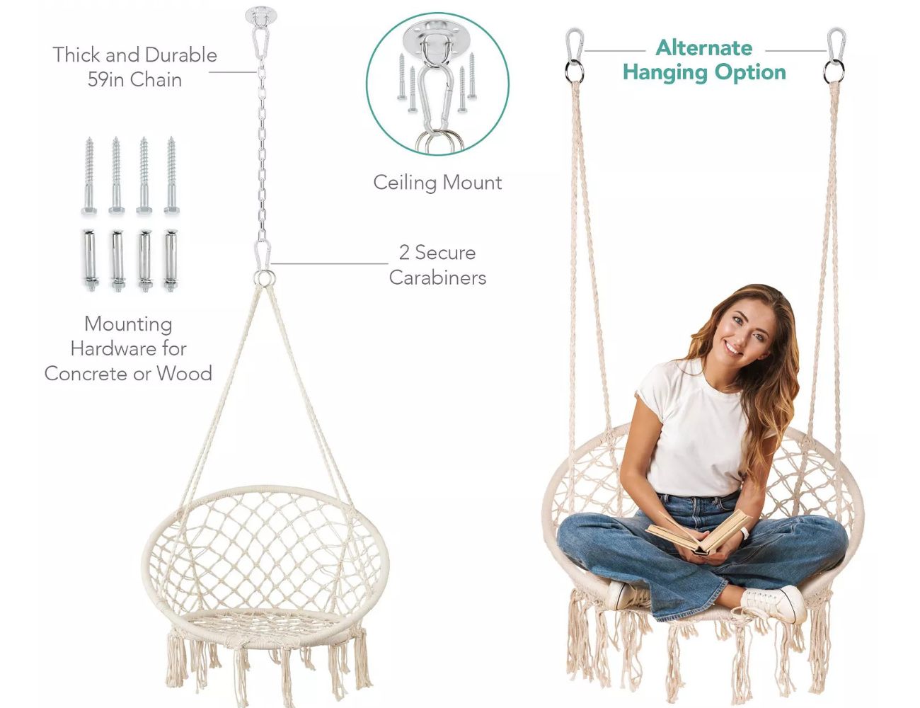 Bohemian Design: Features a macrame net chair pattern with fringe tassels, adding a stylish, artistic accent to any space.