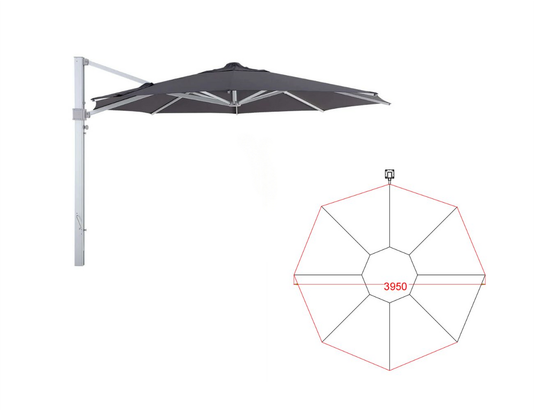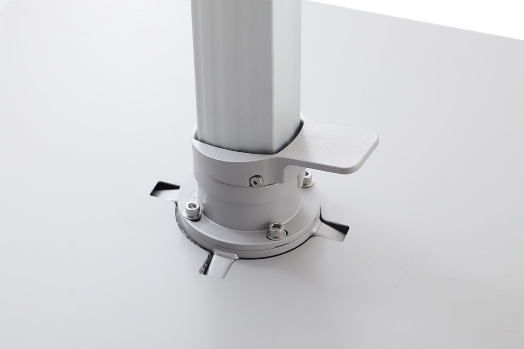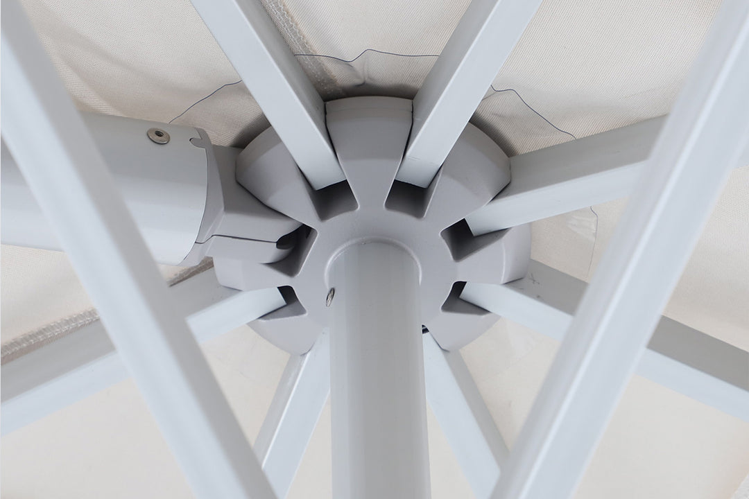 Featuring a sturdy aluminium pole with Matt anodizing for durability, it’s strong and can withstand light breezes and exposure to natural elements. Secured to a solid ground base it protects and stabilises the umbrella. The unique positioning of the pole on cantilever umbrellas keeps the space below the canopy unobstructed.